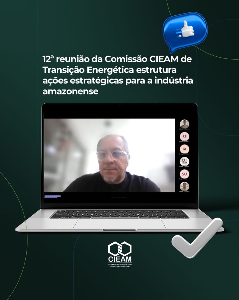 Com o objetivo de discutir estratégias e consolidar o papel do setor na agenda energética da Amazônia, o Centro da Indústria do Estado do Amazonas (CIEAM) realizou, nesta terça-feira (17/03), a 12ª Reunião da Comissão CIEAM de Transição Energética, conduzida pelo Coordenador Marcelo Rodrigues, em que reuniu lideranças industriais em um encontro virtual.