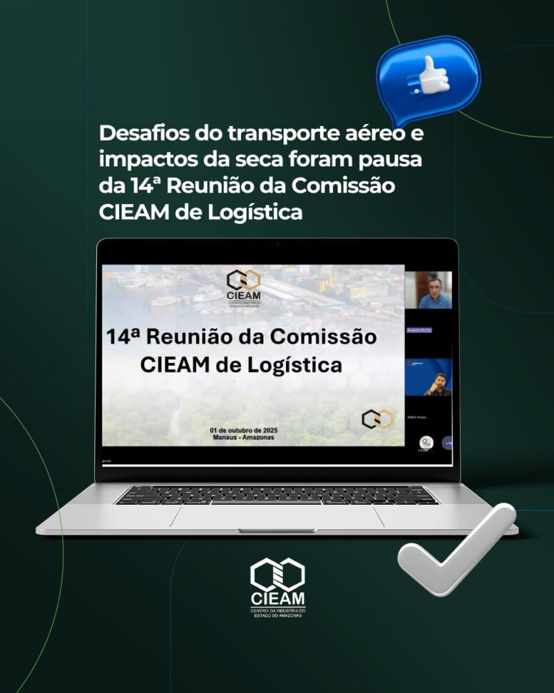 O Centro da Indústria do Estado do Amazonas (CIEAM) promoveu, nesta quarta-feira (01/10), a 14ª Reunião da Comissão CIEAM de Logística, realizada de forma virtual por meio da plataforma Teams. A iniciativa reuniu profissionais e representantes de empresas do setor logístico para debater temas estratégicos, como os problemas de avarias em transportes aéreos de cargas, a chamada “taxa da seca” e ações adicionais diante do agravamento da estiagem na região amazônica.