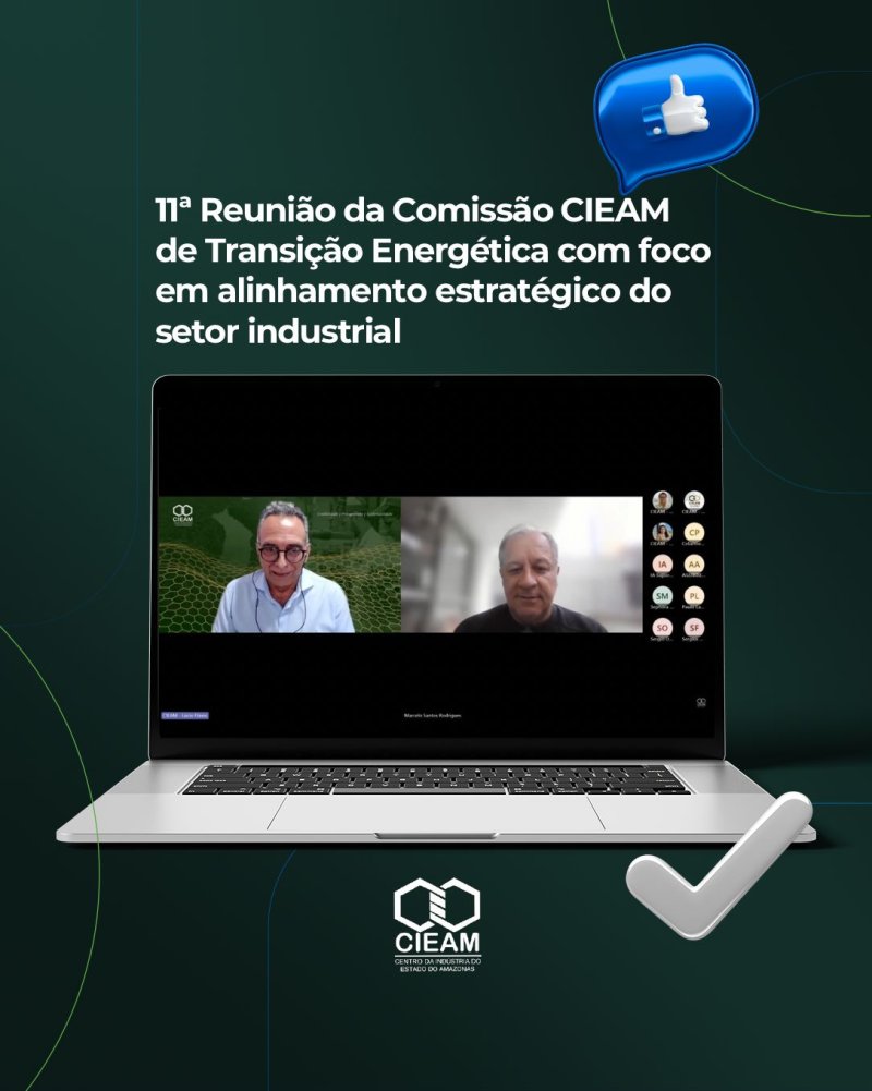 O Centro da Indústria do Estado do Amazonas (CIEAM) realizou, nesta sexta-feira (20/02), sua 11ª Reunião da Comissão CIEAM de Transição Energética. O encontro, realizado por videoconferência, reuniu profissionais estratégicos das áreas de operações, facilities, SGI e qualidade, e contou com a participação do Presidente Executivo da Entidade, Lúcio Flávio Morais de Oliveira.